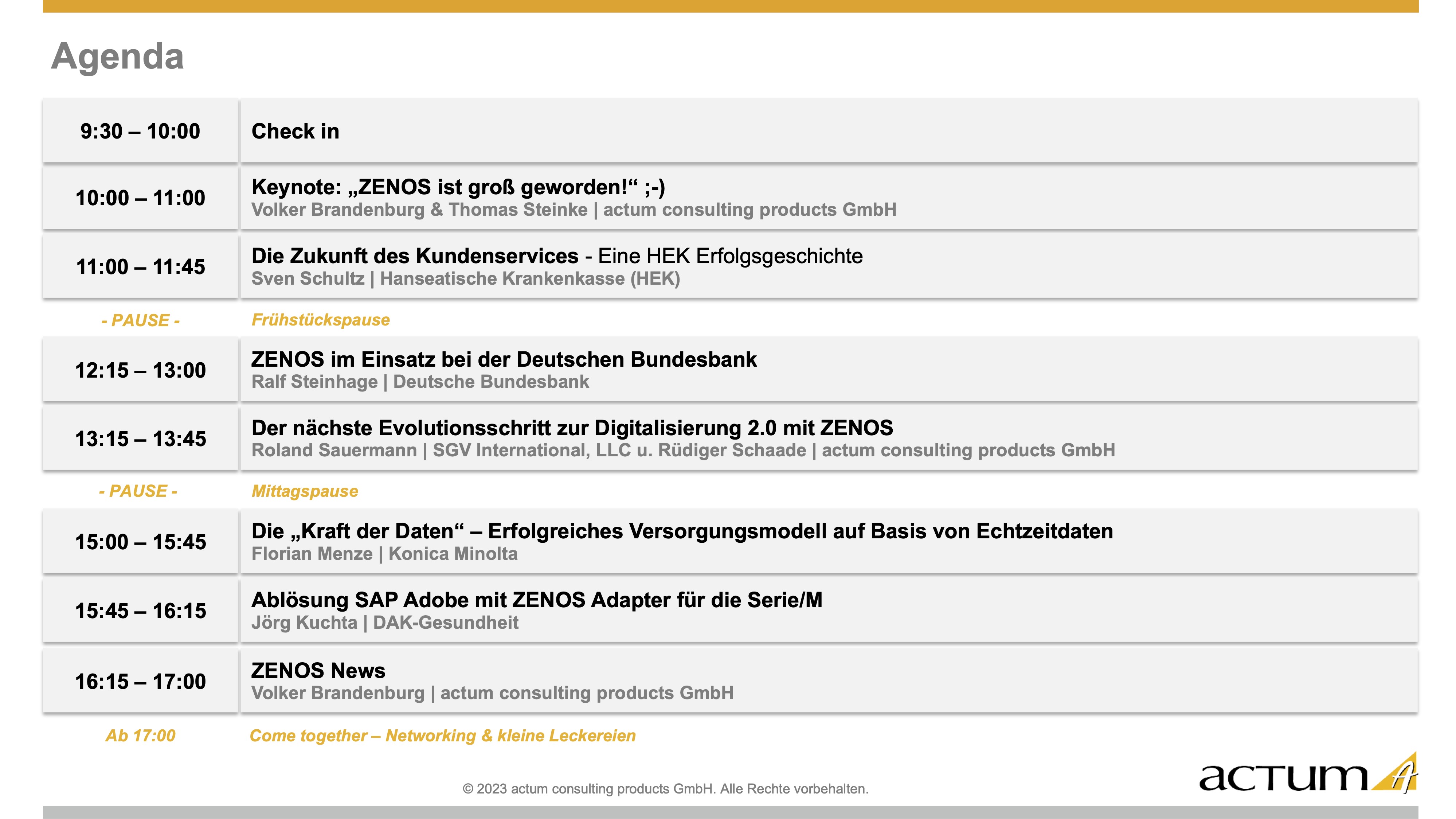 Nach Jahren der Zwangspause freuen wir uns Sie in diesem Jahr endlich wieder zu einer neuen Auflage des ZENOS Forums einladen zu können.